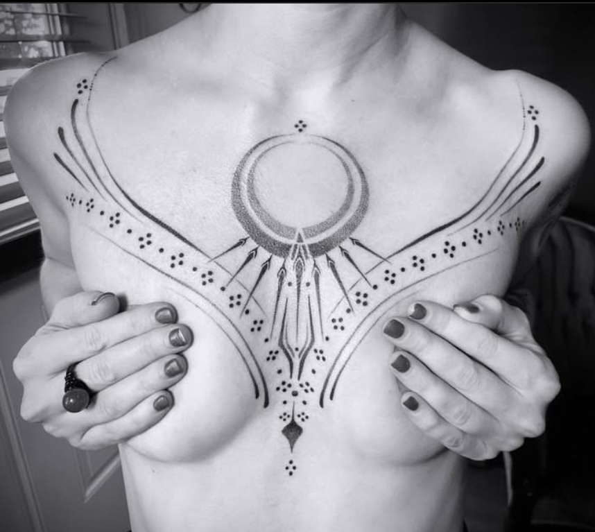 Alicia believes tattooing is an opportunity to align with the vision of one’s soul and considers each tattoo experience a co-creation with the client. Her intention is to offer a unique and spiritually-centered experience, which happens through connecting one-on-one, deep listening, energy work, ritual, and clear intention. She believes this process honors the body as a temple, coaxes light into the unseen, and aims to express the client’s true essence. Using the energy blueprint of the client, a one-of-a-kind design is created to serve as a tool of transformation and a sacred talisman on the journey forward.